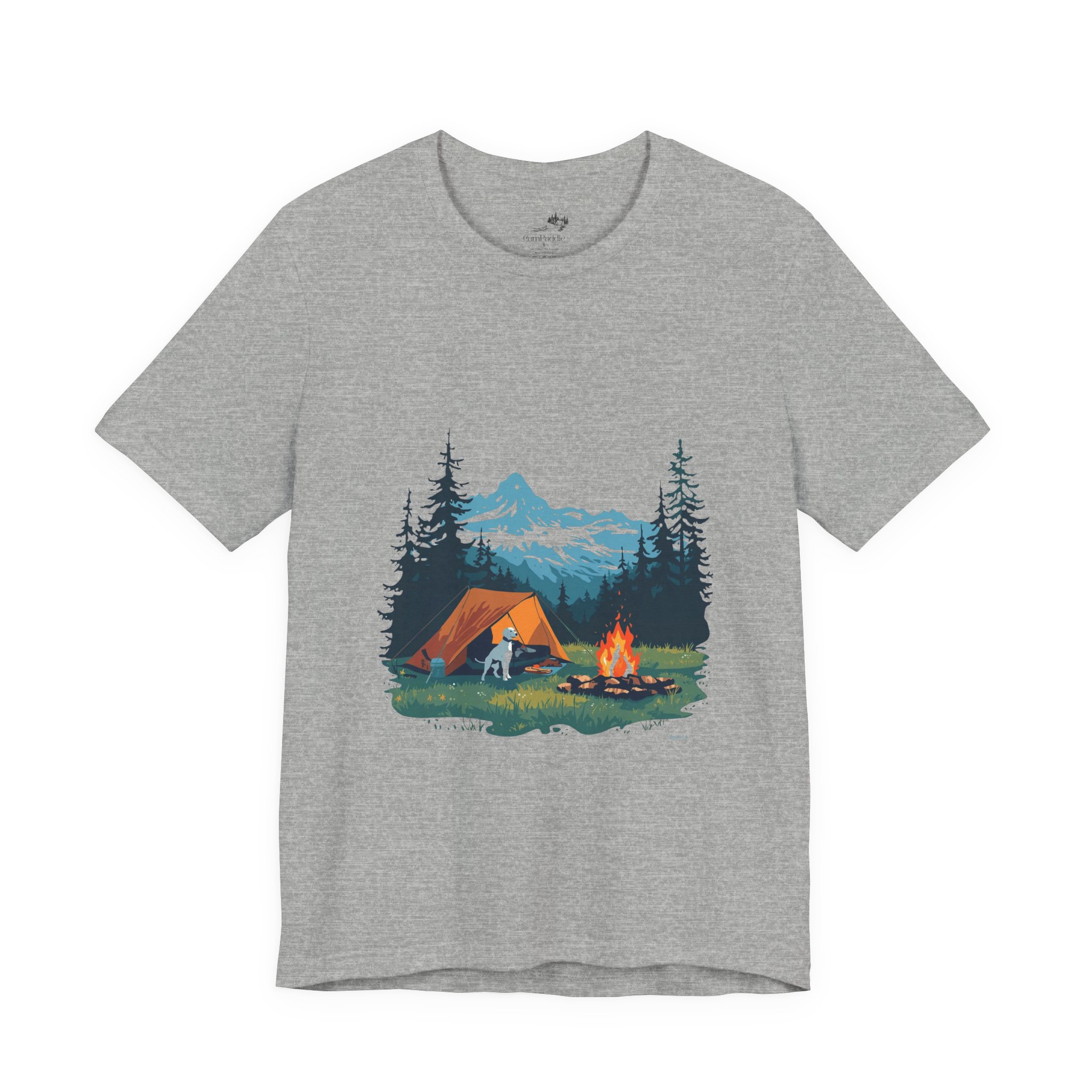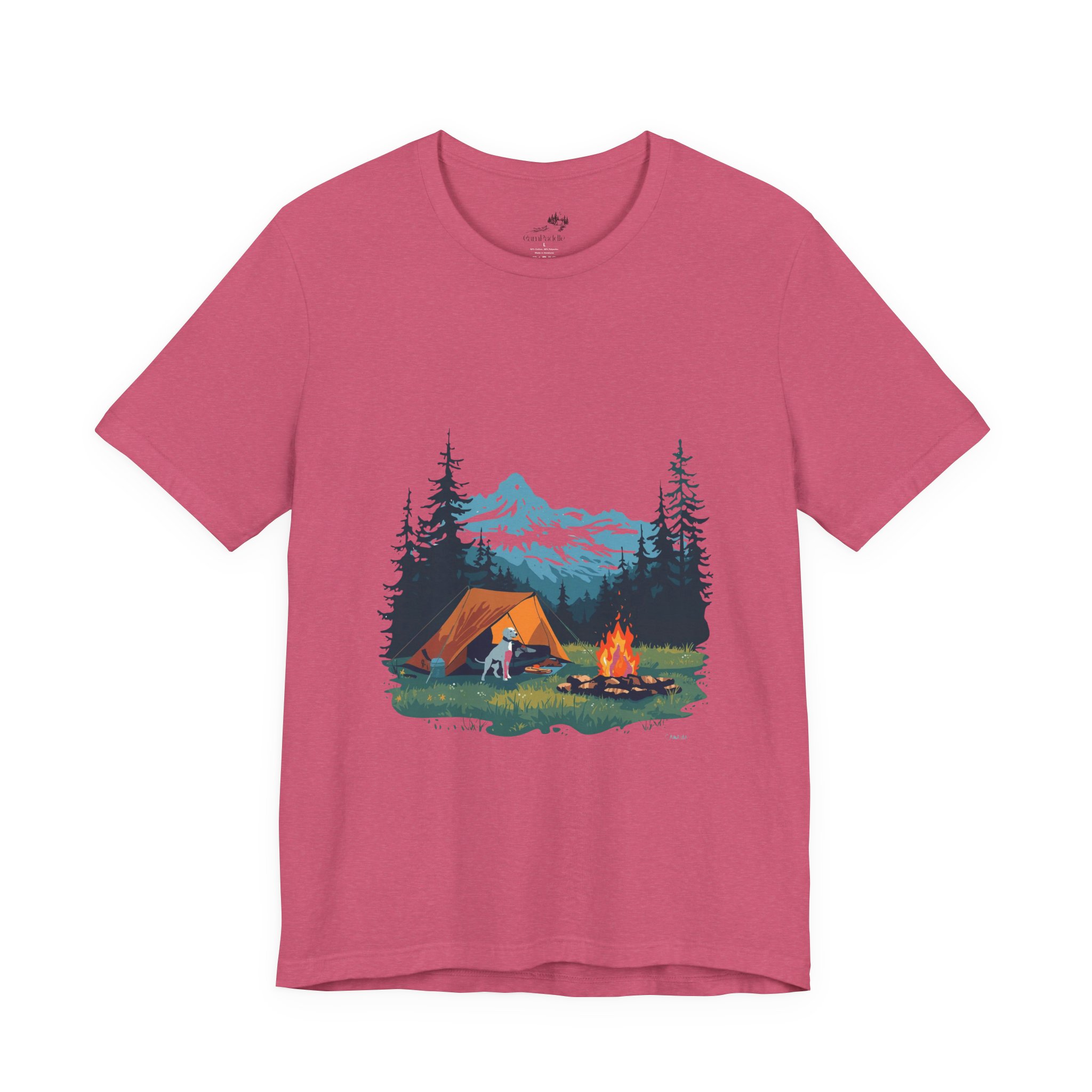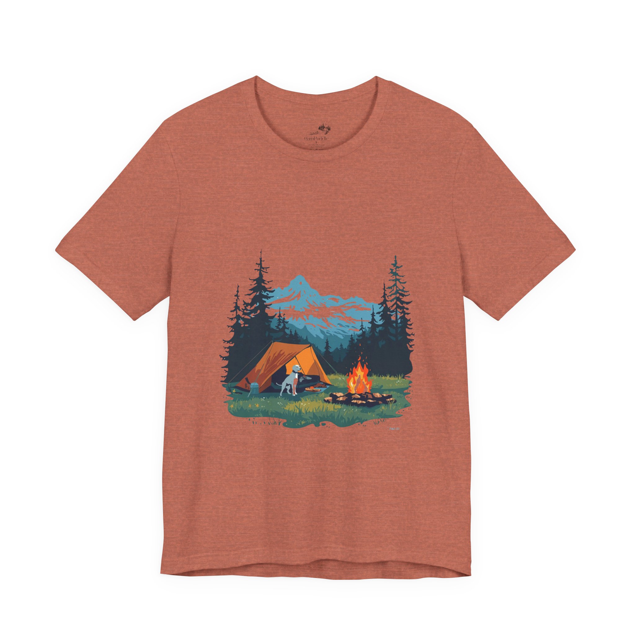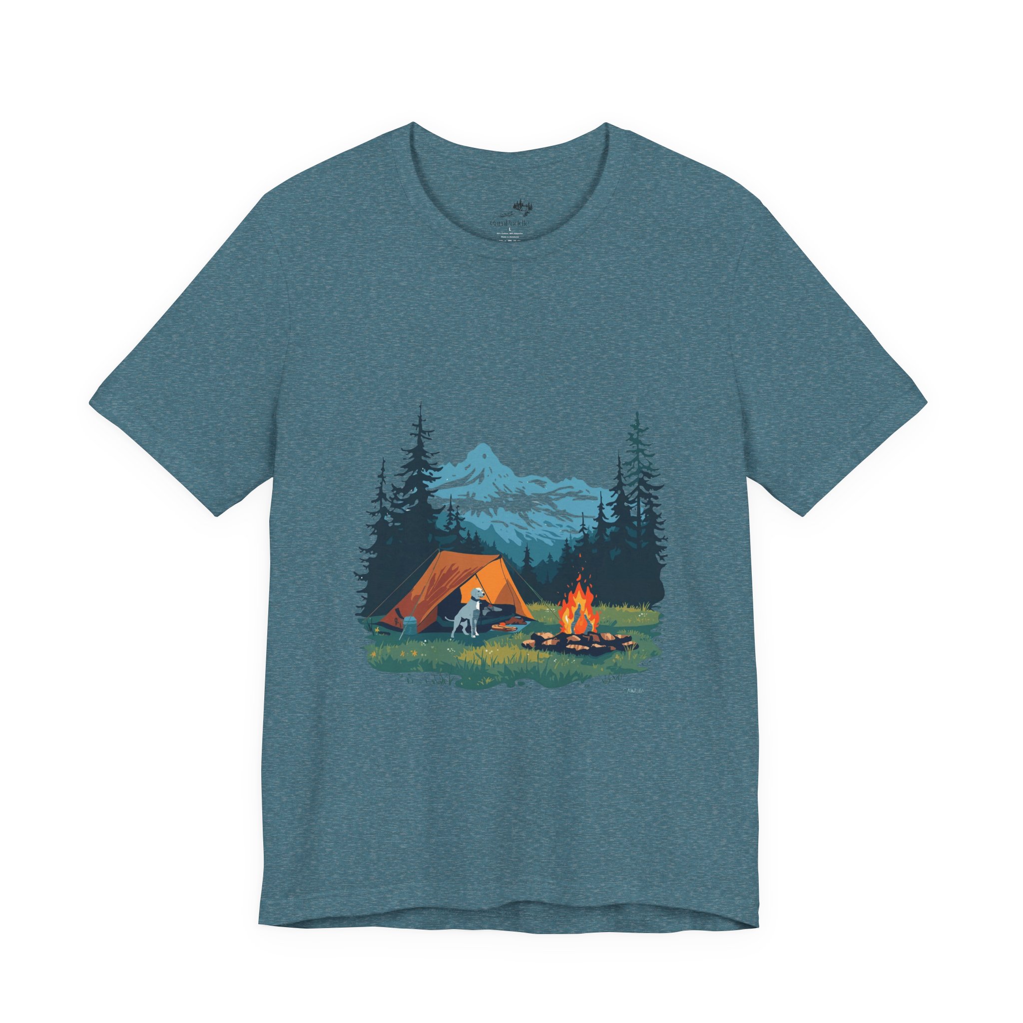 Breathe in the cool pine air and settle into the slow, steady rhythm of a night in the mountains. This soft, breathable tee carries a hand-illustrated campsite scene — a glowing tent, a crackling campfire, a loyal dog by your side, and snow-capped peaks framed by tall firs. It hangs lightly for layering under a flannel or wearing alone when the sun comes up, a quiet reminder of early-morning hikes and stories shared around embers. Wear it on trailheads, at campgrounds, or on weekend drives to the coast; it reads like a postcard from a place where time stretches and hands unclench.