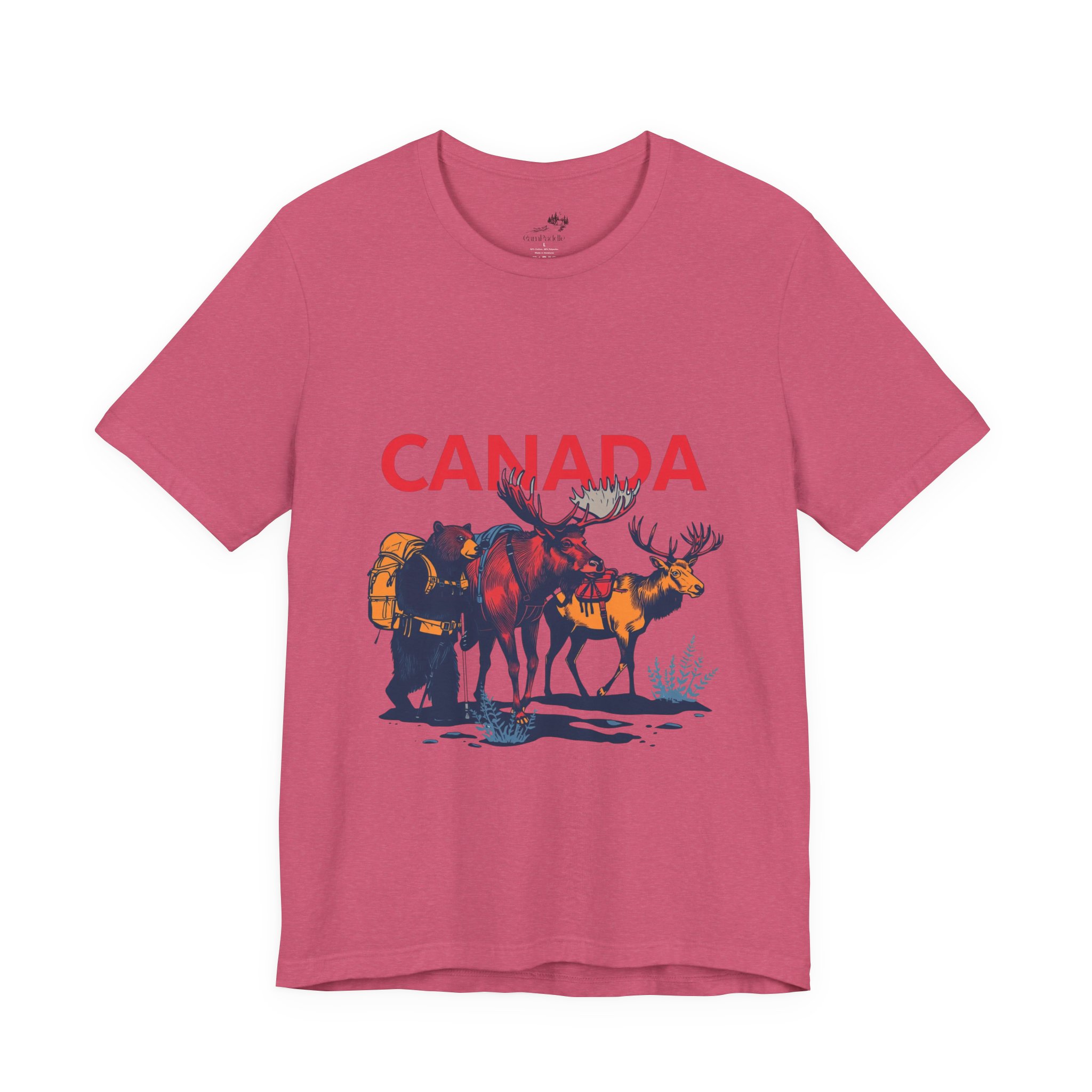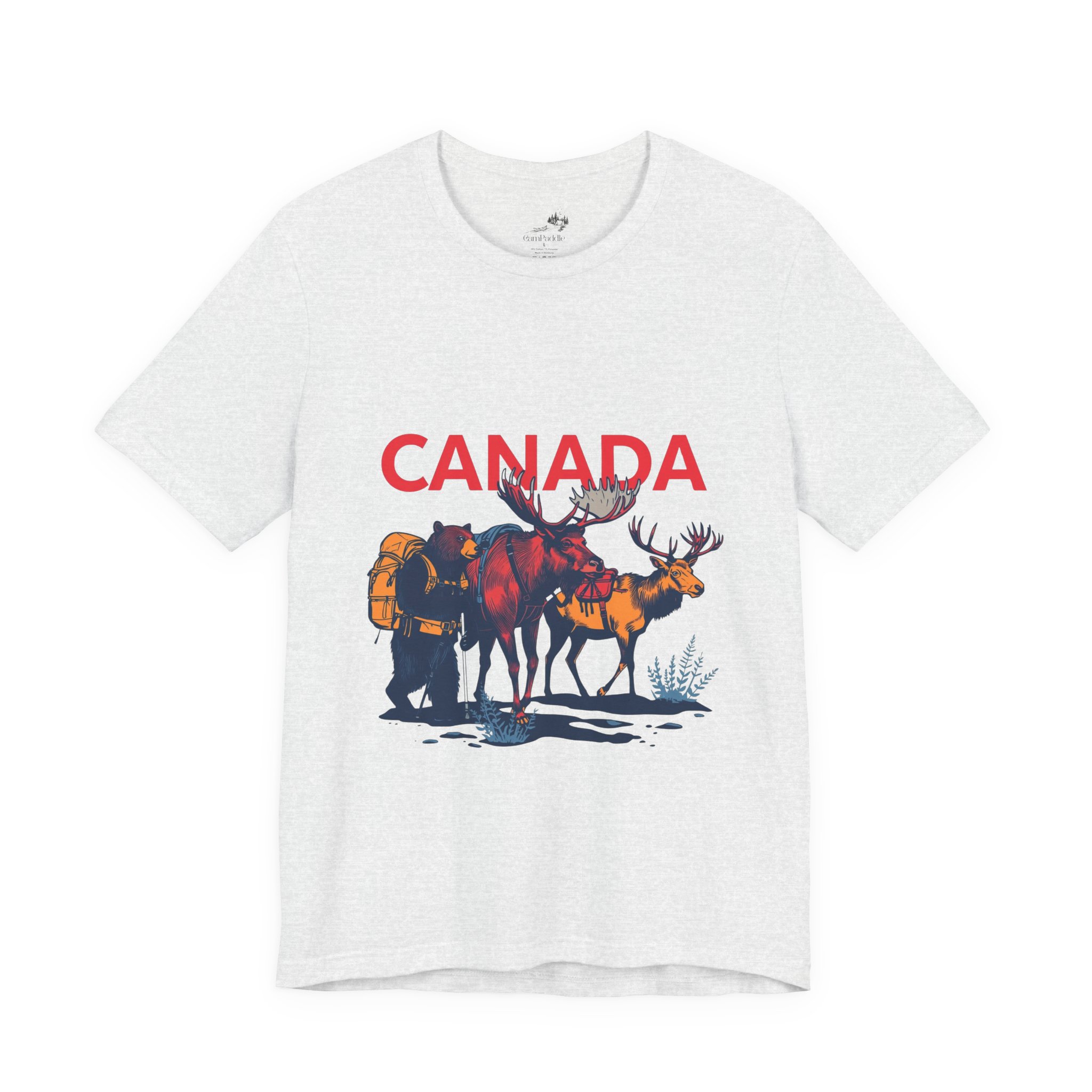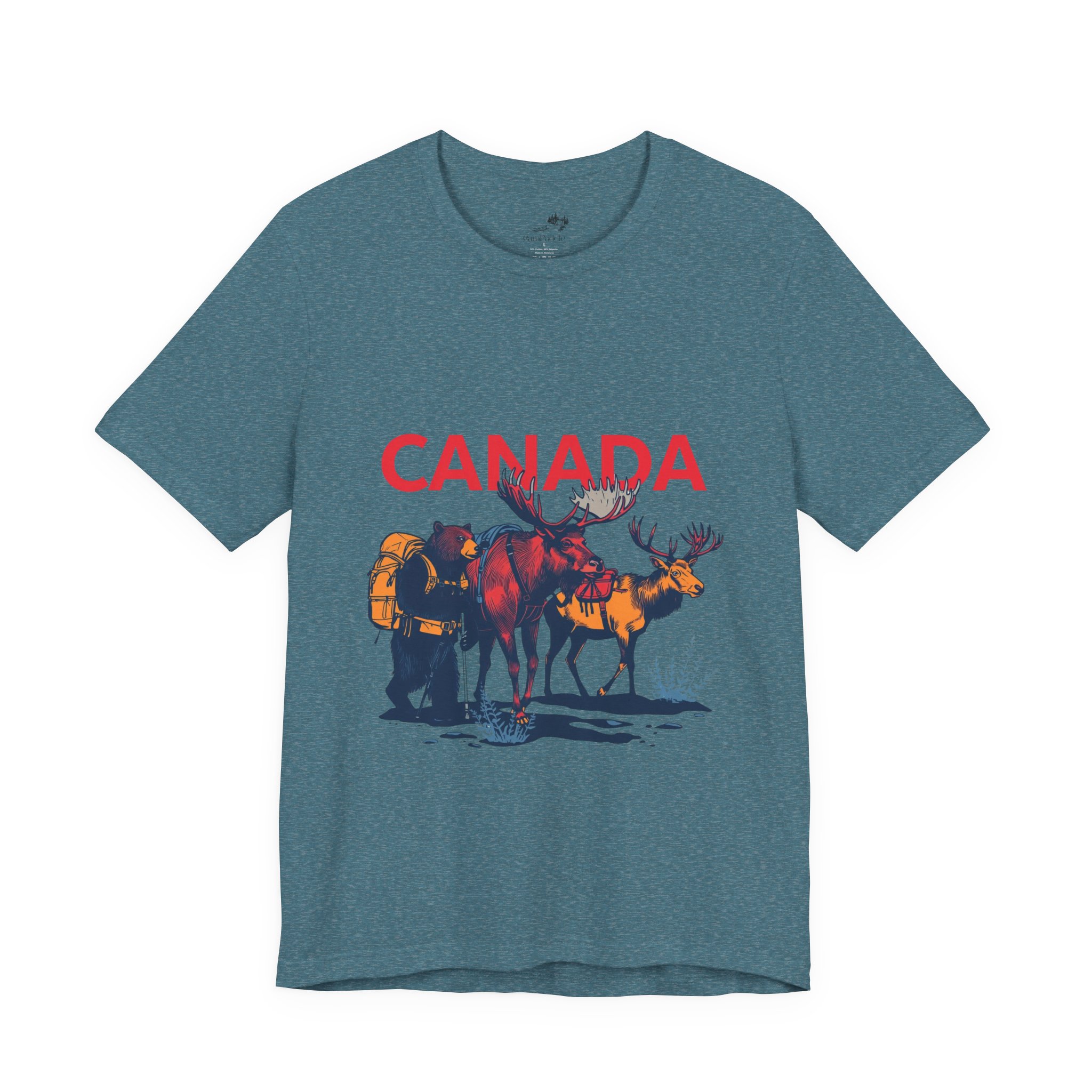 Soft, breathable tee that carries a quiet story of northern trails and wide-open skies. The lightweight cotton drapes easily over layers, while a printed scene of pack-bearing Bear, Moose & Caribou and a bold “CANADA” headline evokes early-morning treks, campsite banter, and slow rides along backcountry roads. Wear it on weekend escapes, long drives, or evenings around a woodstove — it settles in like a familiar companion and shows where your heart wanders without shouting. The retail crew neckline keeps the look clean for everyday wear, and the tear-away label keeps comfort front and center.